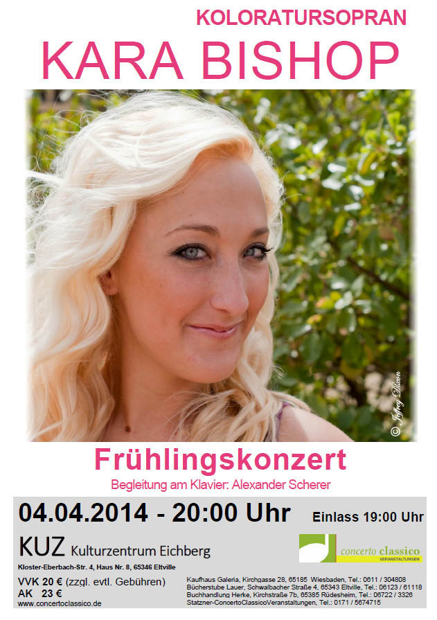 Die Begleitung wird wieder von dem bekannten Konzertpianisten Alexander Scherer übernommen. Herr Scherer, der jahrelang Studienleiter der Wiesbadener Oper war, ist einer der gefragtesten Begleiter Deutschlands.