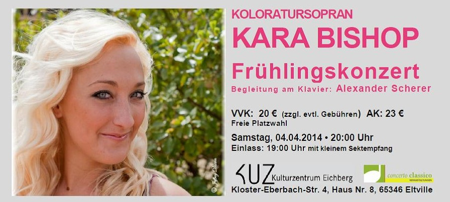 Seit November 2011 singt sie in dem Ensemble Opera Et Cetera. Im Sommer 2012 wurde sie von Opera Classica Europa für die Partie der Pousette aus Manon engagiert. Kara Bishop verfolgt eine rege Konzerttätigkeit in Deutschland und bereitet sich nun für Vorsingen in diesem Jahr vor.