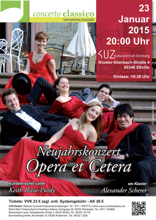 Unter diesen Vorzeichen hat der weltbekannte Tenor Keith Ikaia-Purdy als musikalischer Leiter gemeinsam mit Michael Blevins, der die Programme erarbeitet und mit seinem Schüler, Pascal Mehl, die Gruppe Opera et Cetera gegründet. Die weitere Entwicklung der Sängergruppe schien unter einem guten Stern zu stehen. So konnten die jungen Sängerinnen und Sänger in Alexander Scherer einen äußerst erfahrenen Pianisten für ihre Gruppe gewinnen. Er steht den jungen Künstlern mit seiner Erfahrung beim Einstudieren des Repertoires und als Begleitung bei den Veranstaltungen zur Seite. Tatkräftige Unterstützung gab und gibt es auch von Michael Kopp, in dessen Weingut in Eltville-Hattenheim die Gruppe eine einzigartige Spielstätte und herzliche Aufnahme gefunden hat.