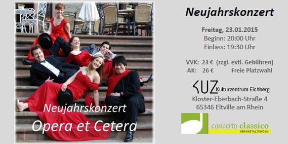 Kein Wunder, dass andere Veranstalter auf Opera et Cetera aufmerksam wurden. Inzwischen ist die Gruppe auch in anderen Spielstätten zu bewundern. So gab es z. B. Auftritte im Kurhaus und im Schloss Biebrich in Wiesbaden, im Kloster Eberbach, beim Jonannisberger Weingarten, im Weingut Geromont, in der Brentanoscheune und, und ... Aber auch bei vielen geschlossenen Veranstaltungen war und ist Opera et Cetera zu Gast.
