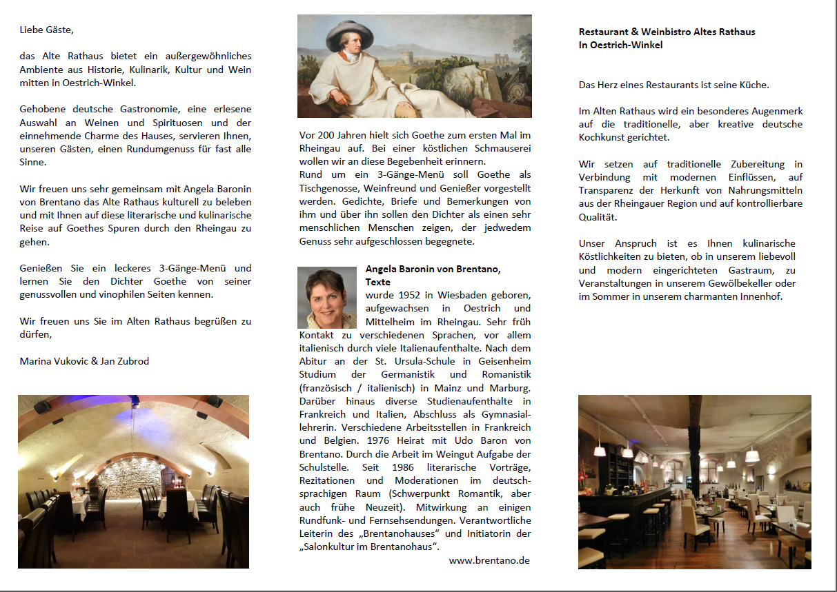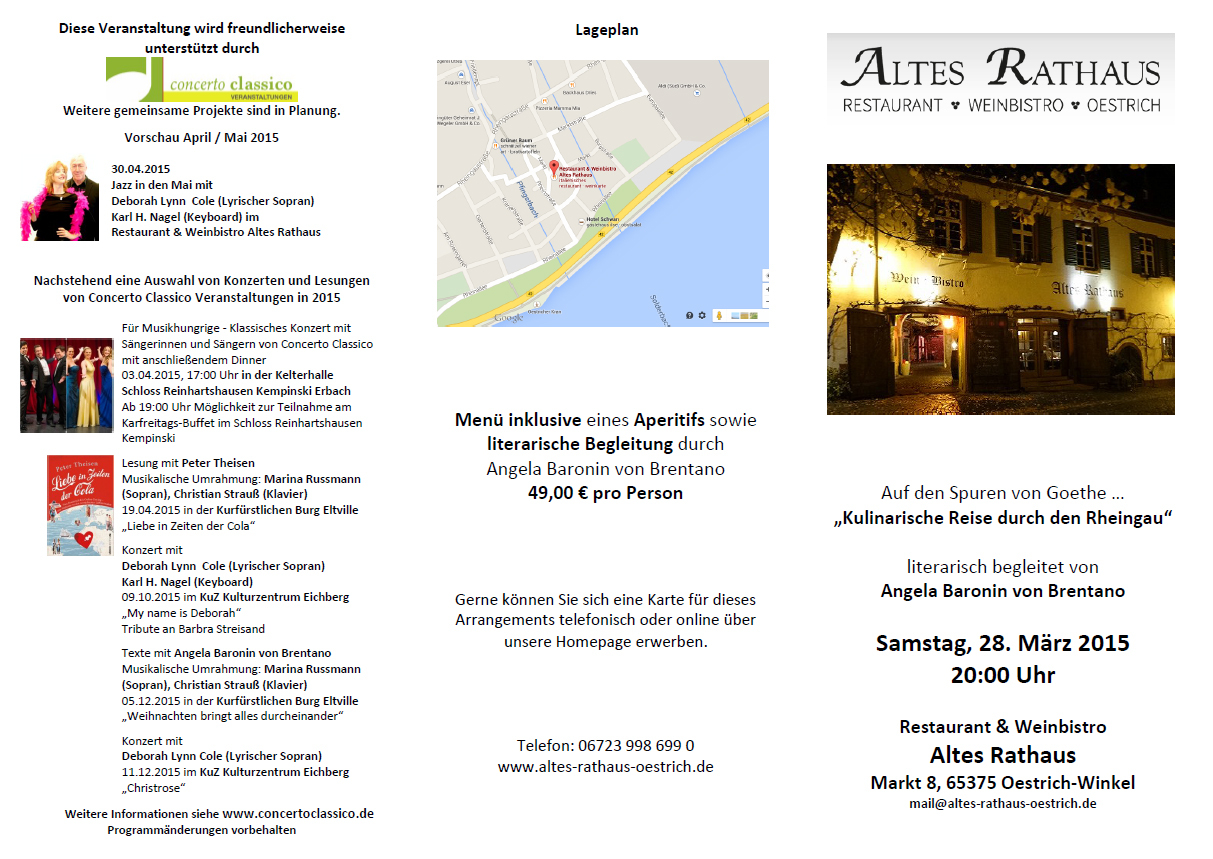 Concerto Classico unterstützt das Alte Rathaus sehr gerne bei dieser Veranstaltung. Frau von Brentano begleitete bereits eine ganze Reihe unserer klassischen Konzerte mit jeweils zum Konzert passend ausgewählten Texten.
