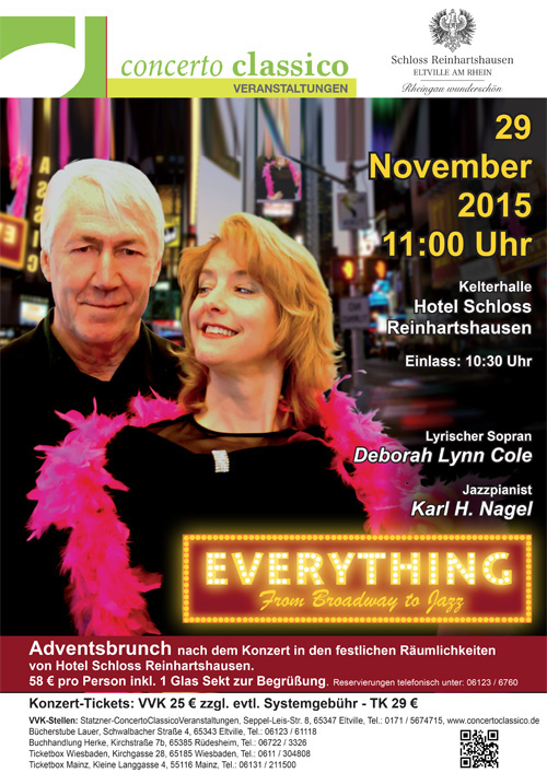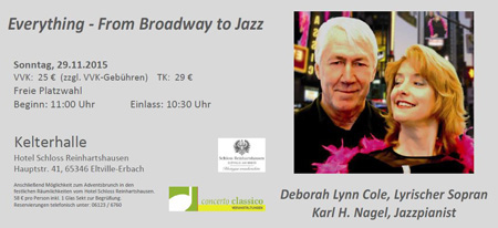 Die amerikanische Sopranistin Deborah Lynn Cole trifft den Jazzpianisten Karl H. Nagel in der Kelterhalle von Hotel Schloss Reinhartshausen.