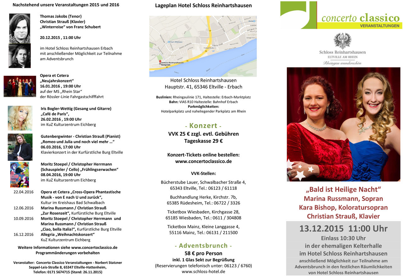 Im Anschluss an das Konzert findet in den festlichen Räumlichkeiten von Hotel Schloss Rein-hartshausen Kempinski ein Adventsbrunch gegen Kostenbeitrag statt.