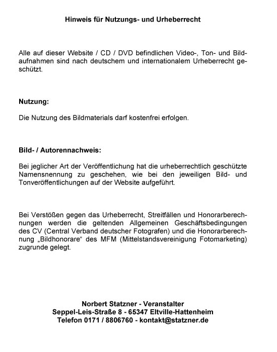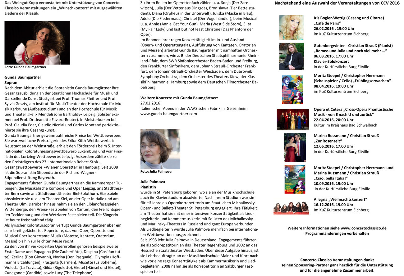 concerto classico Veranstaltungen gUG (haftungsbeschränkt) Norbert Statzner, Seppel-Leis-Straße 8, 65347 Eltville Tel.: (01 71) 5 67 47 15 E-Mail: kontakt@concertoclassico.de |