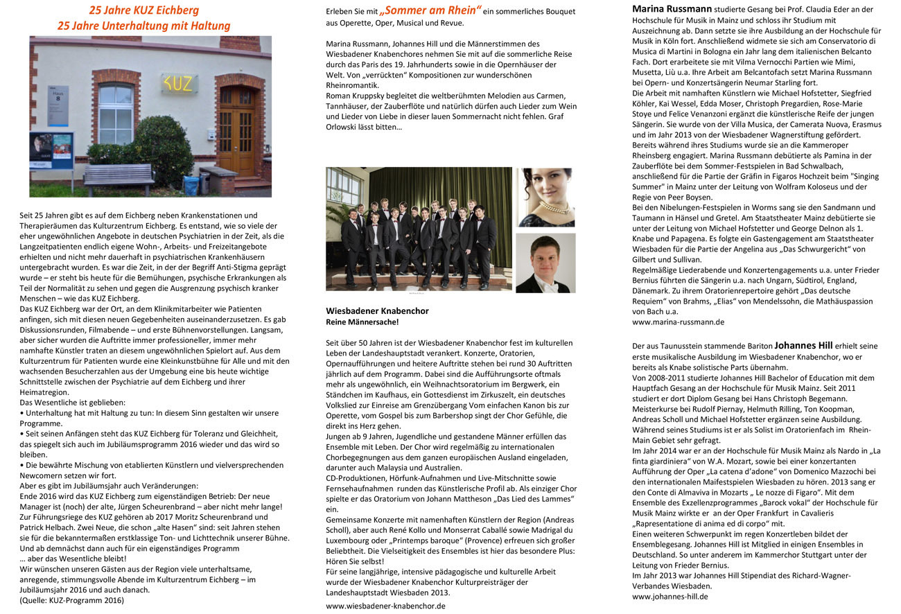 Marina Russmann, Johannes Hill und die Männerstimmen des Wiesbadener Knabenchores nehmen Sie mit auf die sommerliche Reise durch das Paris des 19. Jahrhunderts sowie in die Opernhäuser der Welt. Von „verrückten“ Kompositionen zur wunderschönen Rheinromantik.