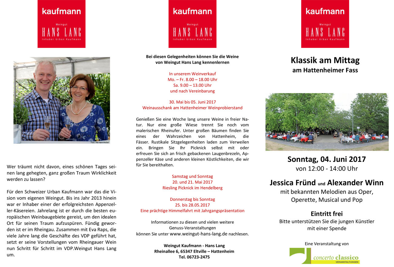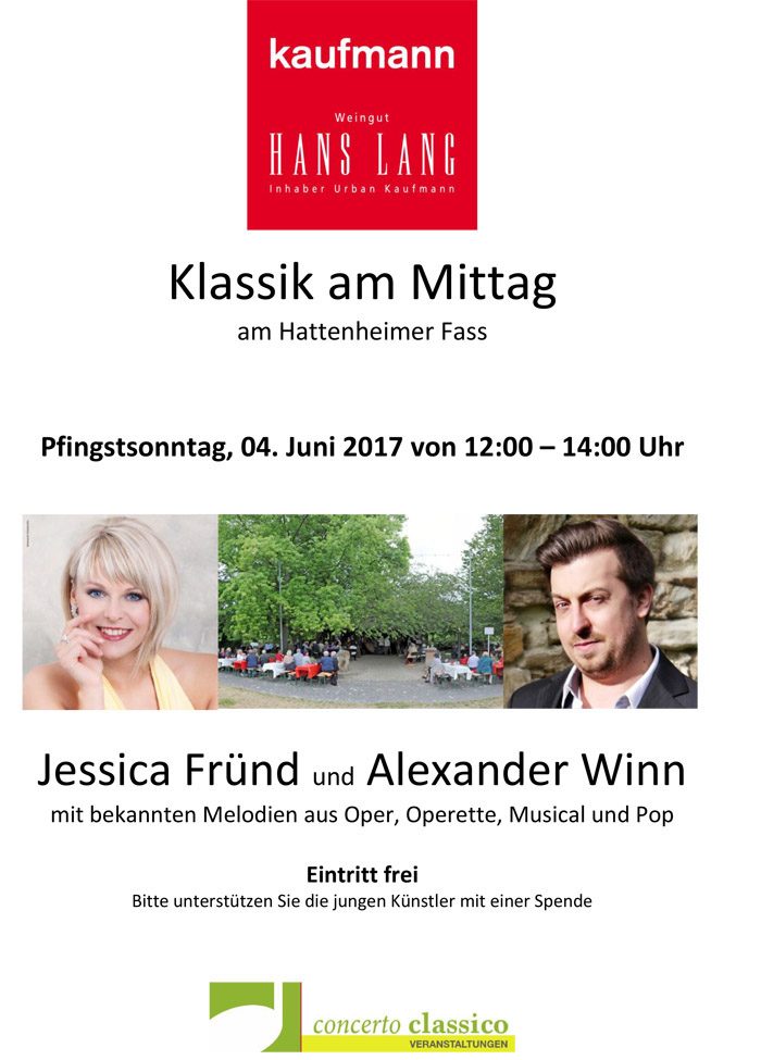 Unsere beliebte Reihe „Klassik am Mittag“ am Weinstand in Hattenheim findet nun bereits im dritten Jahr in Folge bei den Weinstand-Wochen des Weingutes Hans Lang / Kaufmann im Juni und im September statt.