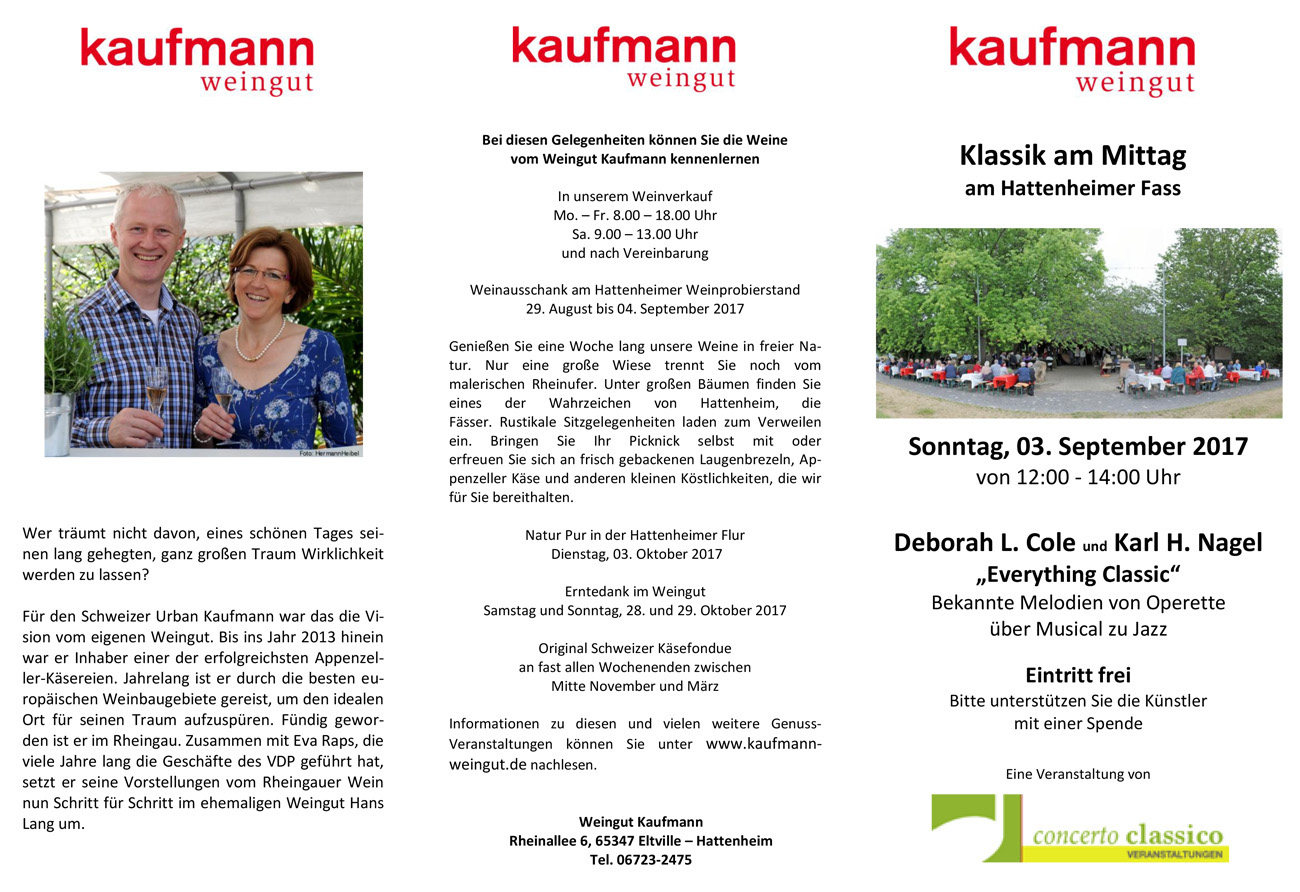 Unsere beliebte Reihe „Klassik am Mittag“ am Weinstand in Hattenheim findet nun bereits zum sechsten Mal bei den Weinstand-Wochen des Weingutes Kaufmann im Juni und im September statt.