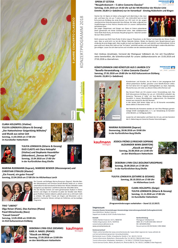 concerto classico Veranstaltungen gUG (haftungsbeschränkt) Norbert Statzner, Seppel-Leis-Straße 8, 65347 Eltville Tel.: (01 71) 5 67 47 15 E-Mail: kontakt@concertoclassico.de |