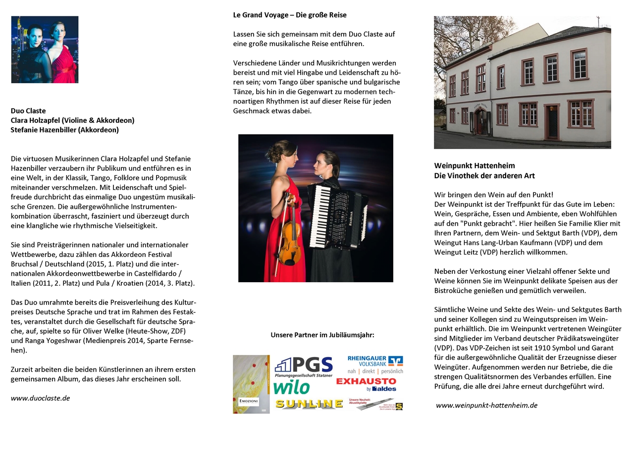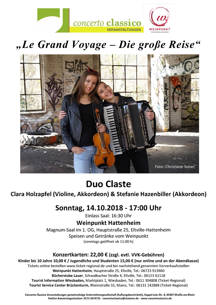 Lassen Sie sich gemeinsam mit dem Duo Claste auf eine große musikalische Reise entführen.