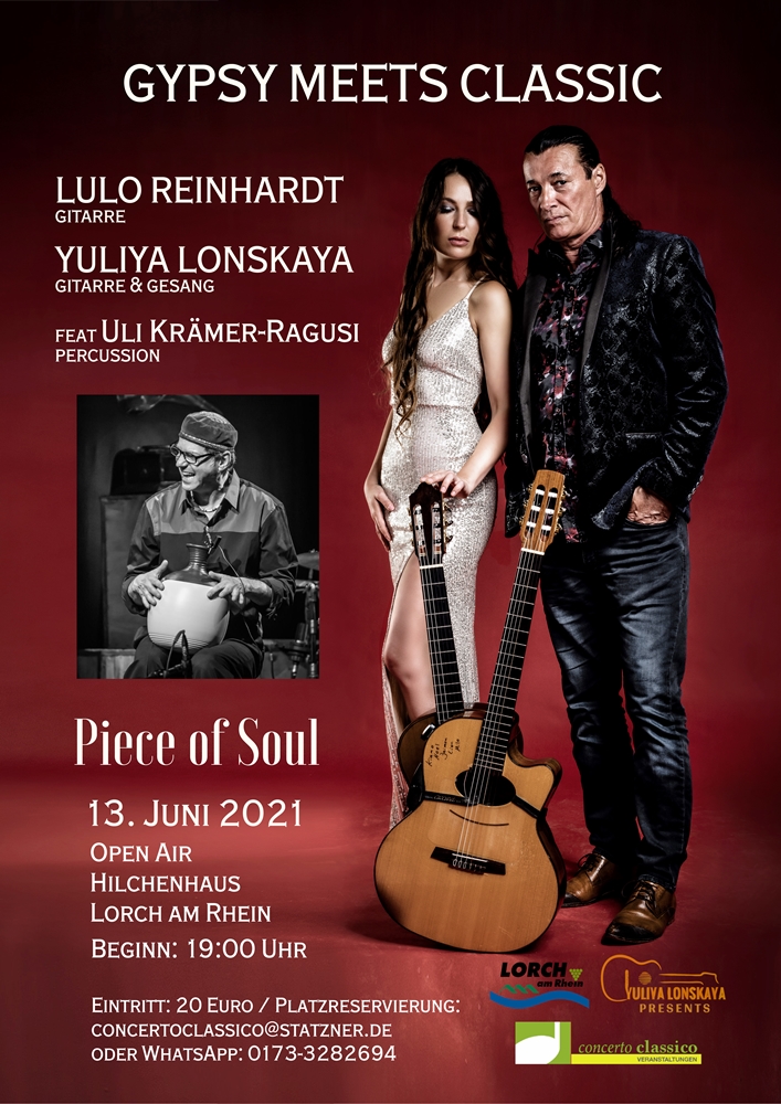 Ende Juli 2021 erscheint das neue Album "Piece of Soul" - Die erste gemeinsame DUO-CD von Lulo Reinhardt und Yuliya Lonskaya, die mehrere musikalische Stilrichtungen kombiniert.